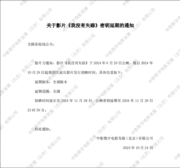 《我没有失踪》第六次密钥延期的通知