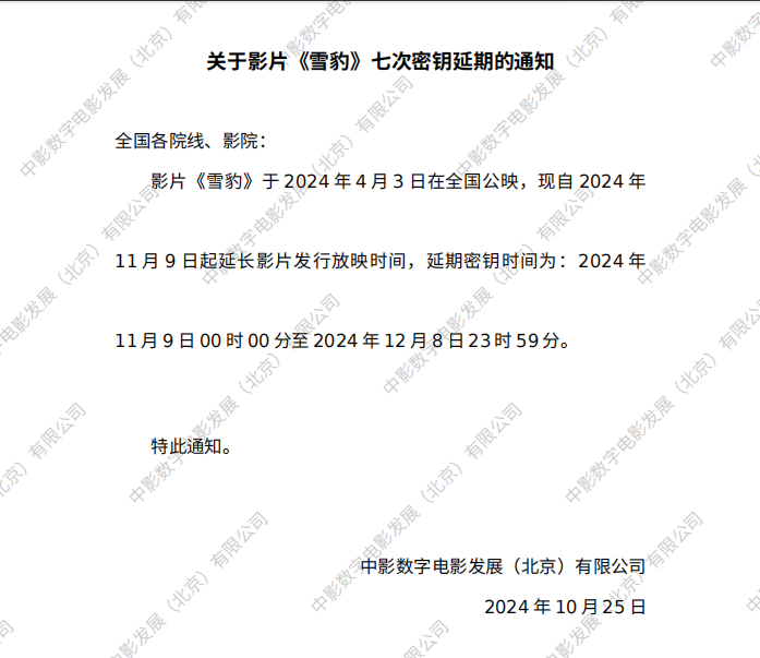 《雪豹》第十四次密钥延期的通知