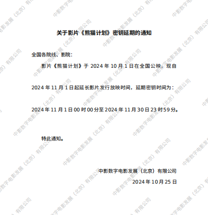《熊猫计划》第二次密钥延期的通知