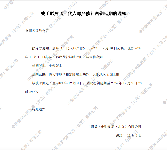 《一代人师严修》第五次密钥延期的通知