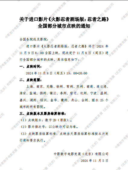 《火影忍者剧场版:忍者之路》发行通知(延期)