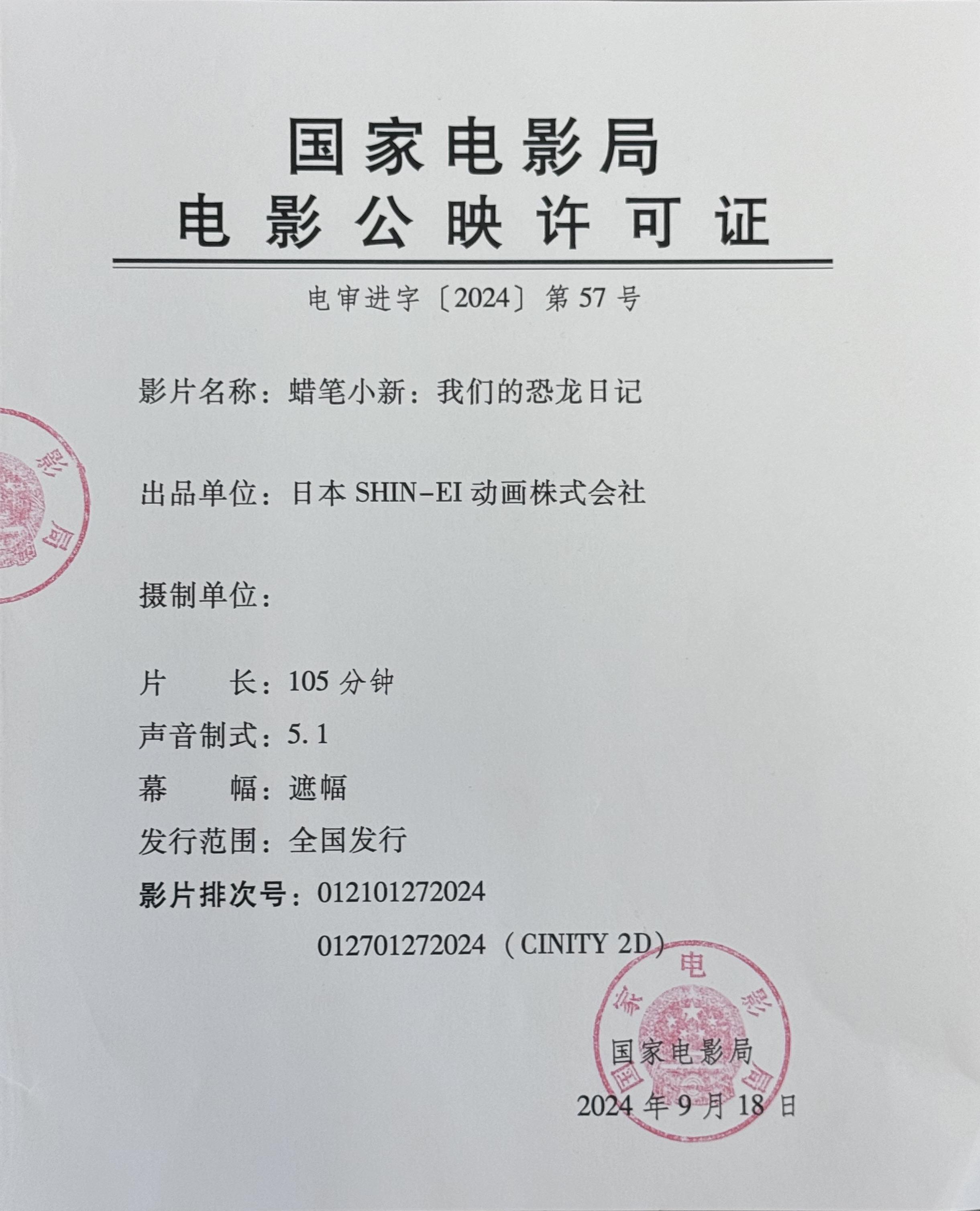 《蜡笔小新:我们的恐龙日记》发行通知(延期)