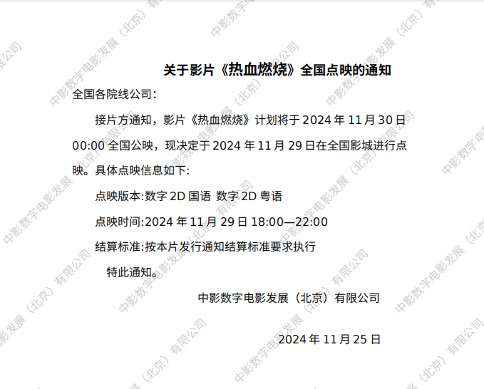 《热血燃烧》发行通知