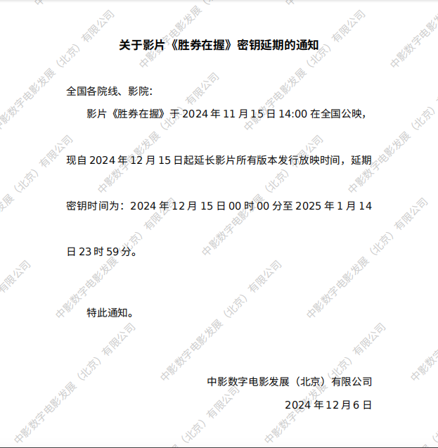 《胜券在握》提档的通知