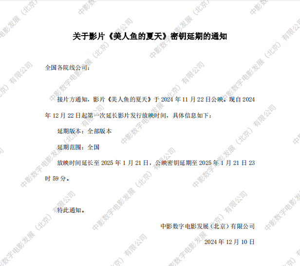 《美人鱼的夏天》第二次密钥延期的通知