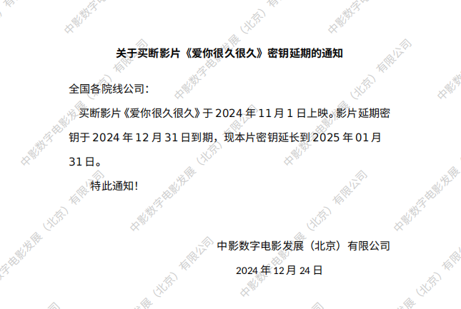 《爱你很久很久》第三次密钥延期的通知