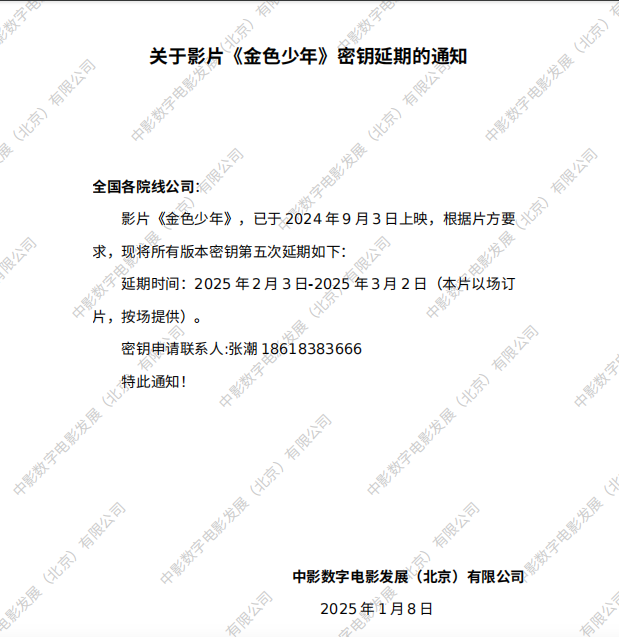 《金色少年》密钥延期的通知