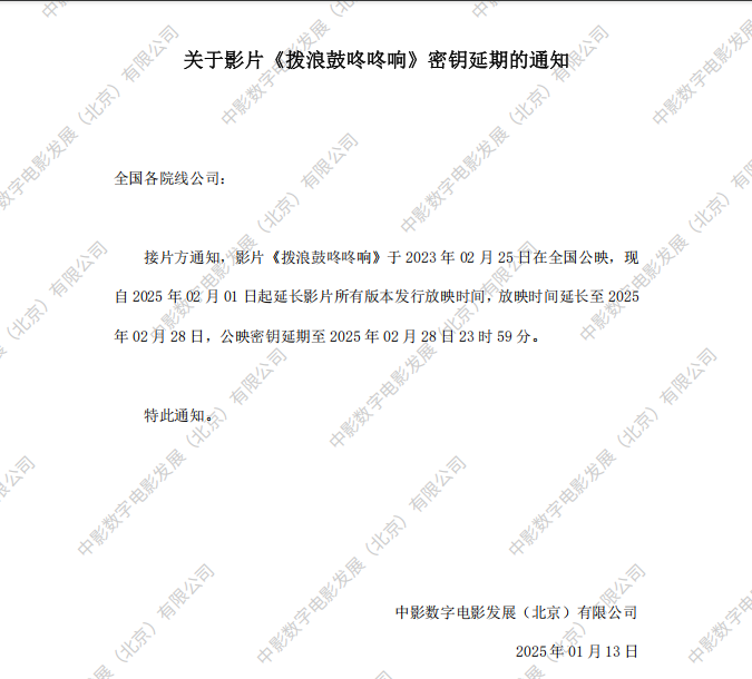 《拨浪鼓咚咚响》第三十二次密钥延期的通知