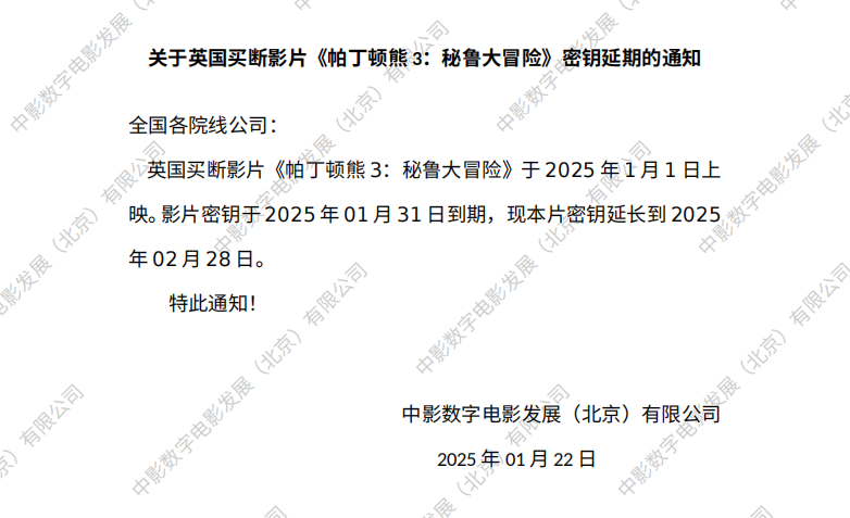 《帕丁顿熊3:秘鲁大冒险》发行通知