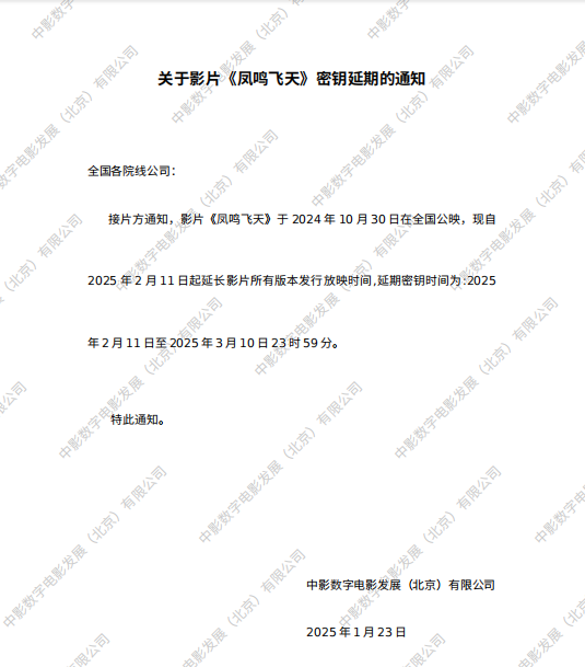 《凤鸣飞天》第二次密钥延期的通知
