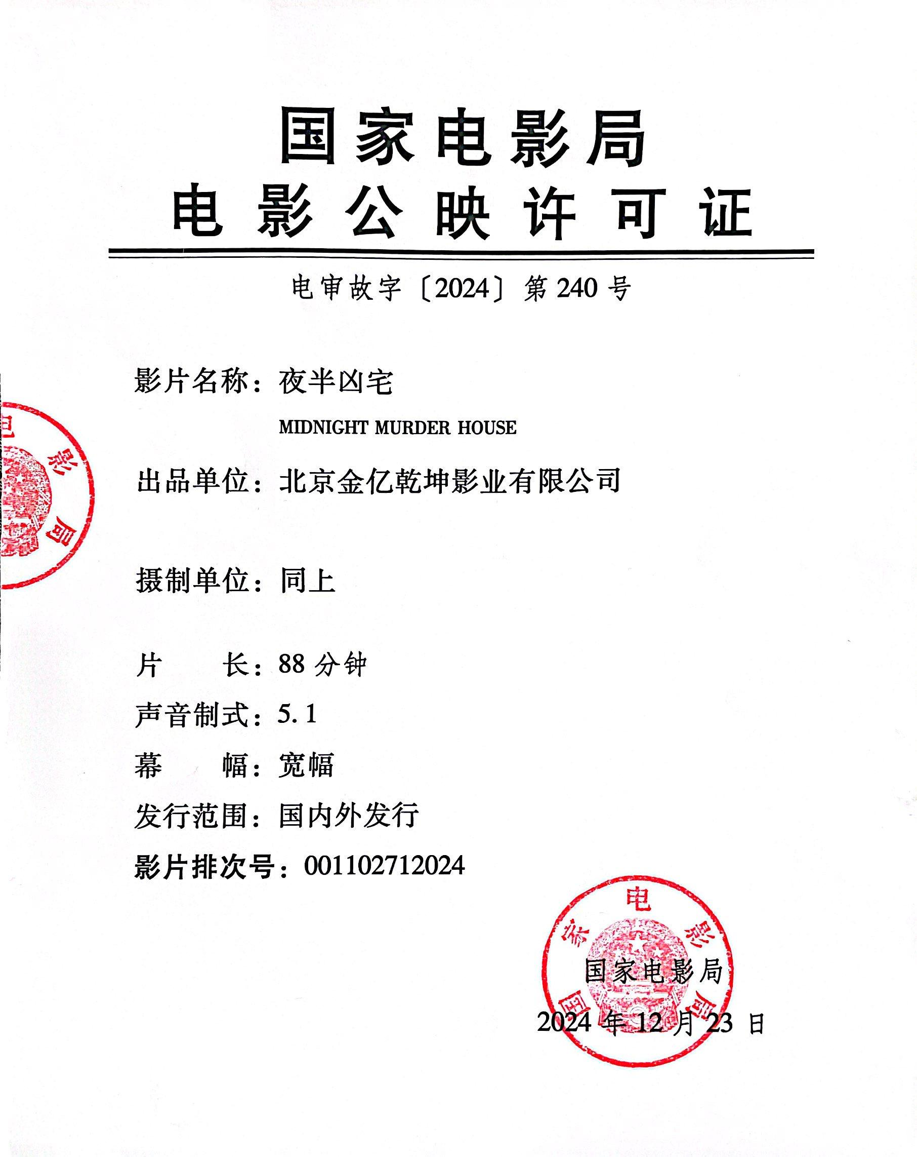 《夜半凶宅》调整票房结算标准的通知