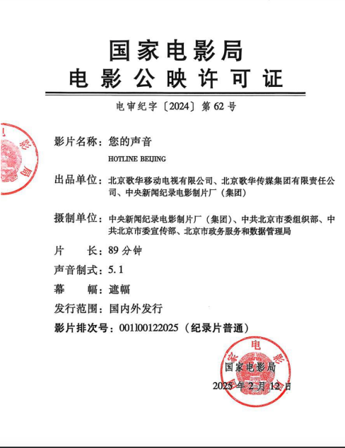 出 品:北京歌华传媒集团有限责任公司、中央新闻纪录电影制片厂(集团)、北京歌华移动电视有限公司