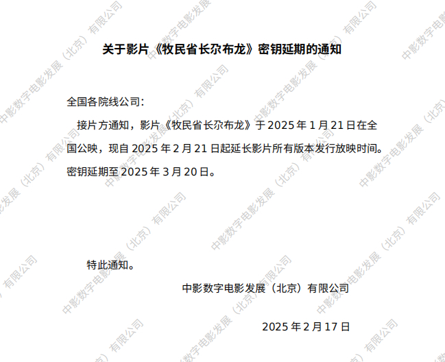 《牧民省长尕布龙》第十二次密钥延期的通知