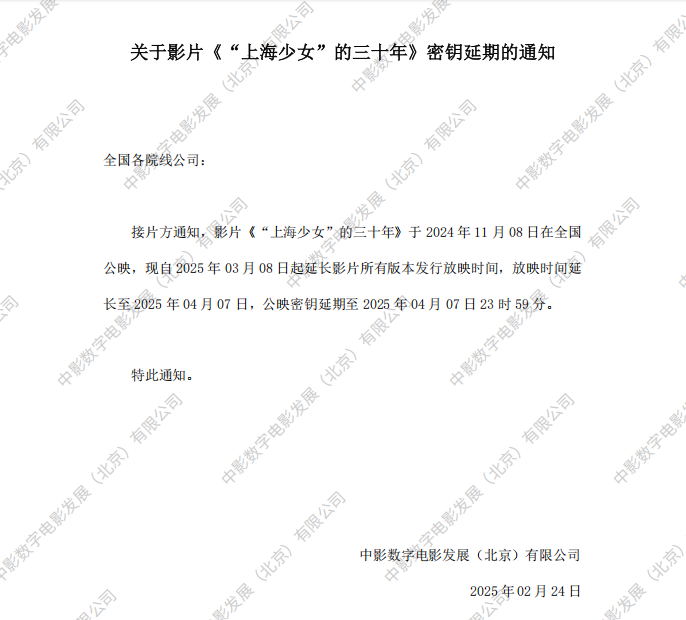 《“上海少女”的三十年》第十二次密钥延期的通知