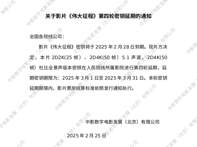 影片《伟大征程》第七轮密钥延期的通知