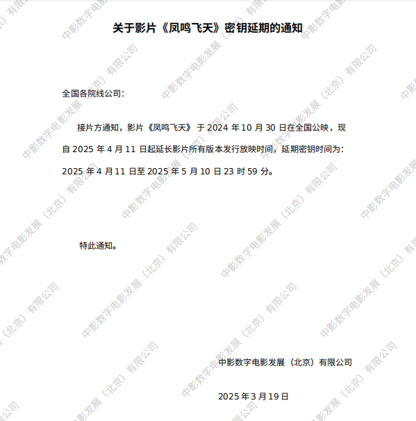 《凤鸣飞天》第二次密钥延期的通知