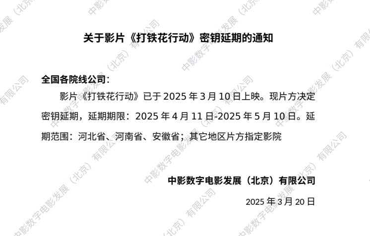《打铁花行动》第四次密钥延期的通知