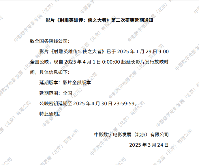《射雕英雄传:侠之大者》密钥延期的通知