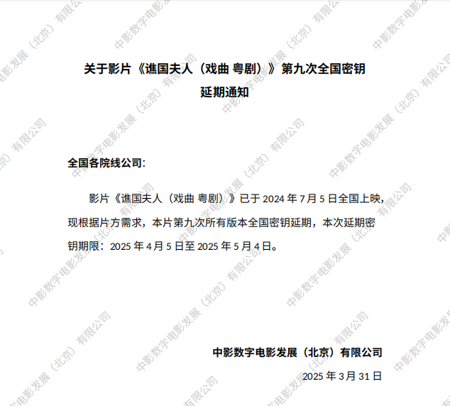 《金灿灿的夏天》第四次密钥延期的通知