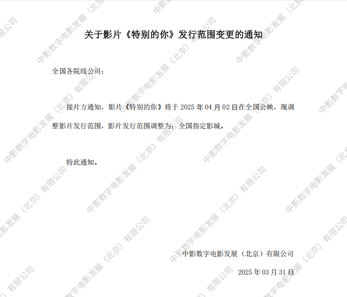 《特别的你》发行通知