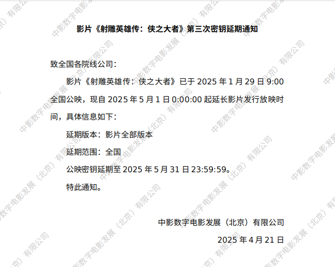 《射雕英雄传:侠之大者》密钥延期的通知