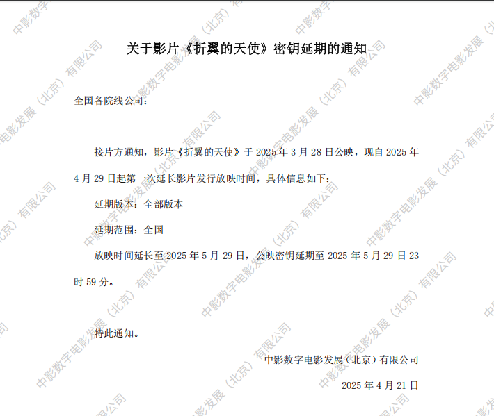 《折翼的天使》第二次密钥延期的通知