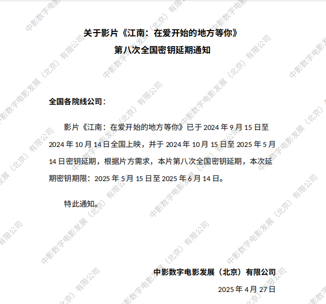 《江南:在爱开始的地方等你》第四次全国密钥延期的通知