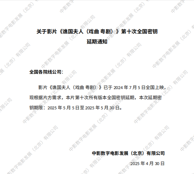 《金灿灿的夏天》第四次密钥延期的通知