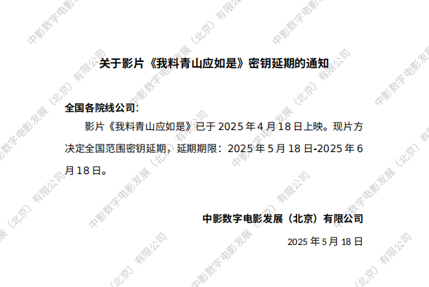 发行通知 » 《我料青山应如是》密钥延期的通知