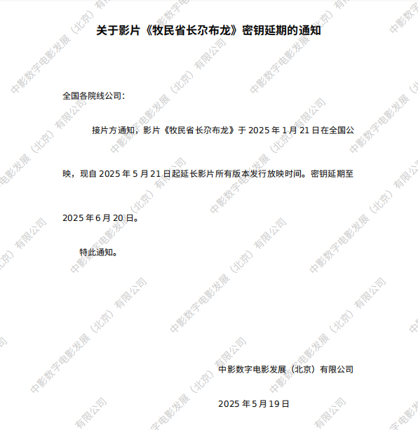《牧民省长尕布龙》第十二次密钥延期的通知