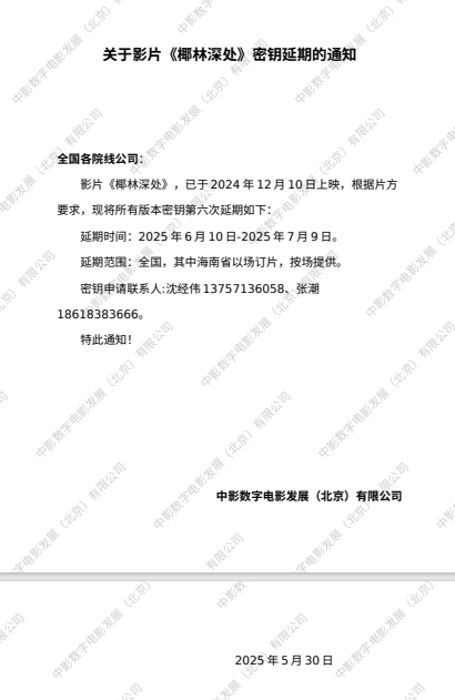 《椰林深处》第九次密钥延期的通知