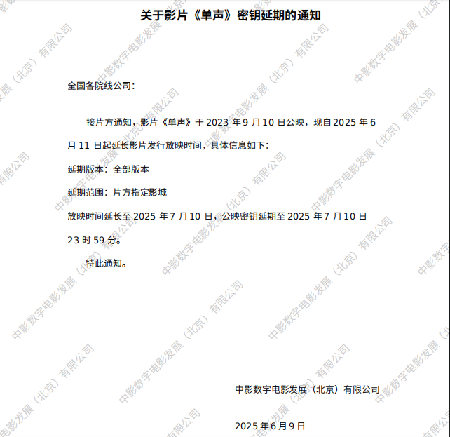 《单声》第二十二次密钥延期的通知
