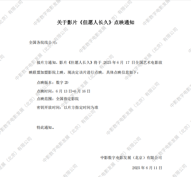 发行通知 » 《但愿人长久》点映的通知