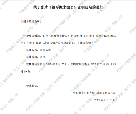 《钢琴搬来搬去》密钥延期的通知