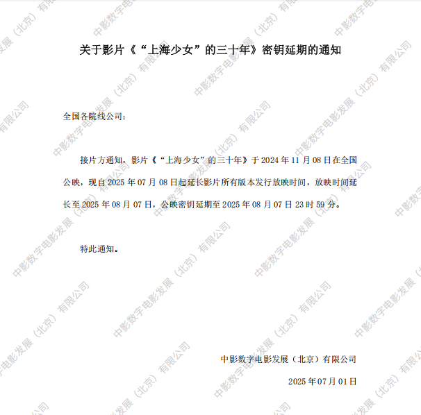 《“上海少女”的三十年》第十六次密钥延期的通知