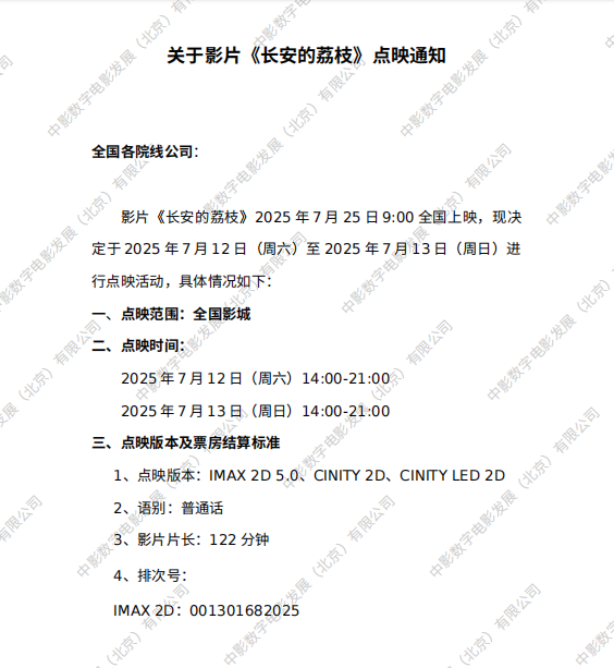《长安的荔枝》调整票房结算标准的通知
