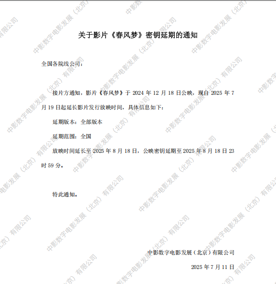 《春风梦》第九次密钥延期的通知