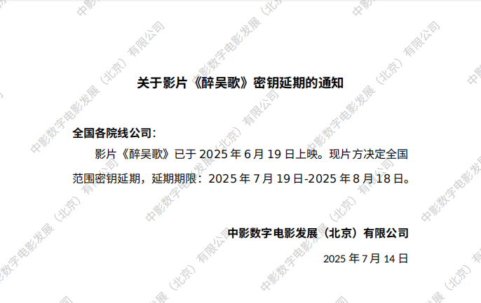《醉吴歌》密钥延期的通知