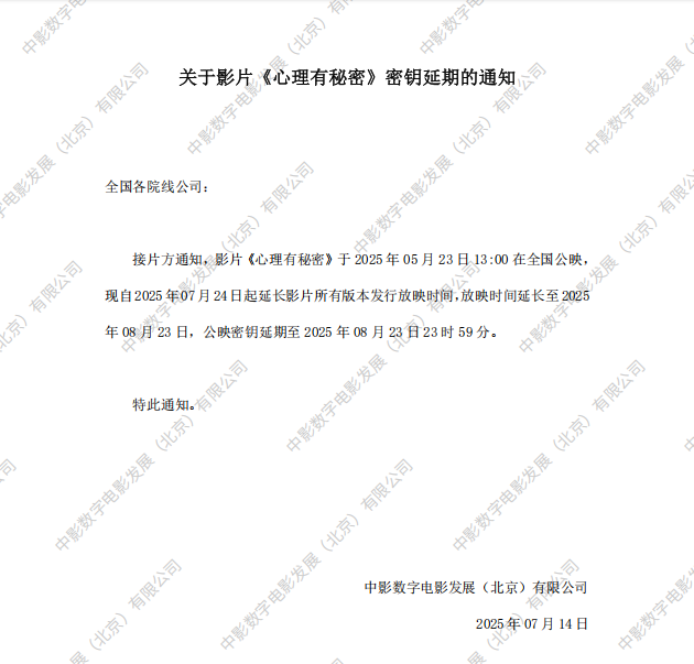 《心理有秘密》密钥延期的通知