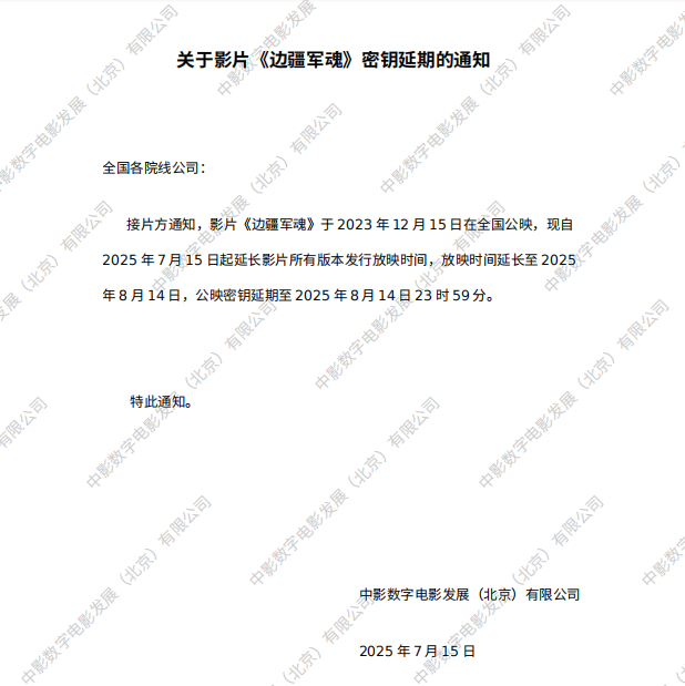 发行通知 » 《边疆军魂》第十九次密钥延期的通知