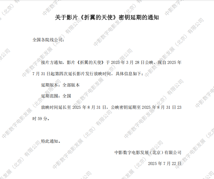 《折翼的天使》第二次密钥延期的通知