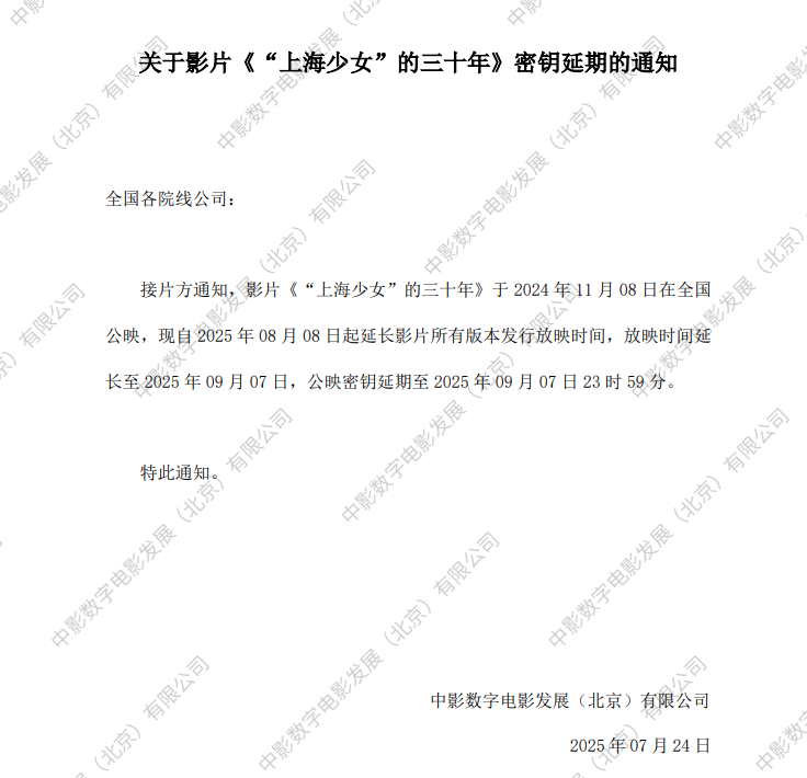 《“上海少女”的三十年》第十四次密钥延期的通知