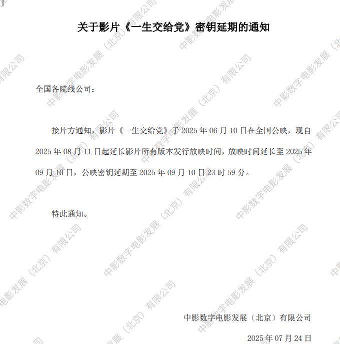 《一生交给党》密钥延期的通知