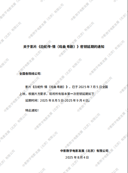 发行通知 » 《白蛇传·情(戏曲 粤剧)》密钥延期的通知