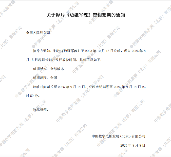 《边疆军魂》第二十五次密钥延期的通知