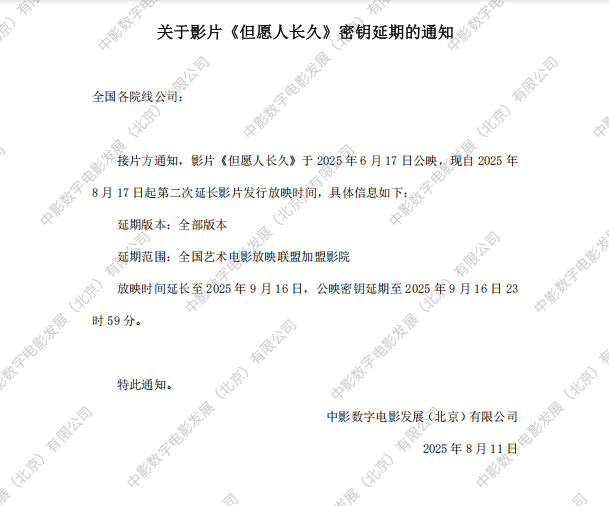 《但愿人长久》第三次密钥延期的通知