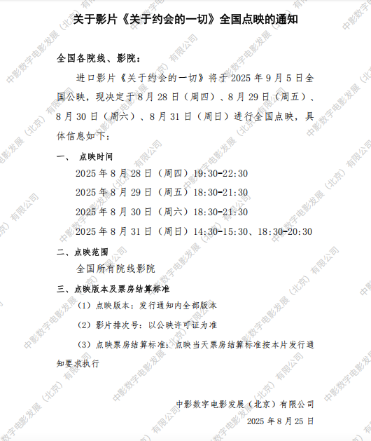 《关于约会的一切》发行通知(第二次延期)