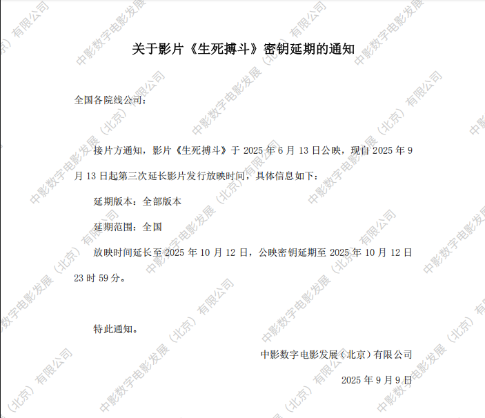 《生死搏斗》第二次密钥延期的通知