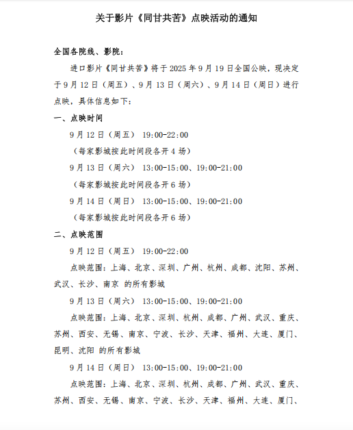 《同甘共苦》点映活动的通知