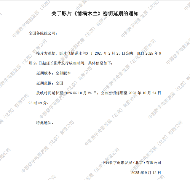 《情满木兰》第九次密钥延期的通知